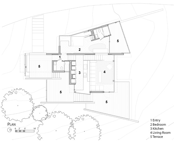 Designed by New York based architects Cooper Joseph Studio, the Small House sits amongst an orchard of newly planted olive trees on a site overlooking the Dry Creek Valley near Sonoma, California. The 80m2 house embodies rich layers of detail & texture despite its small size; the simple programme - a bedroom, a kitchen and a living room are made beautiful through a reduced palette of zinc and gray stained oak.